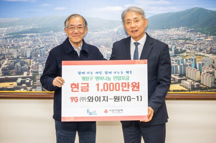 [파이낸셜경제=김기보 기자] 인천광역시 계양구는 ㈜와이지-원(YG-1)이 지역사회 취약계층을 지원하기 위해 1,000만 원을 기탁했다고 5일 밝혔다.