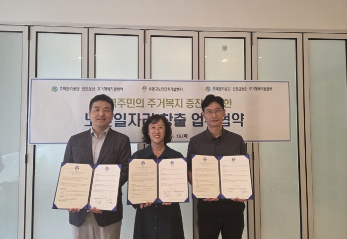 [파이낸셜경제=김기보 기자] 부평구 노인인력개발센터는 지난 16일 주택관리공단 산하 주거행복지원센터 2곳과 ‘시니어주거복지지원단’ 운영 관련 업무 협약을 체결했다.