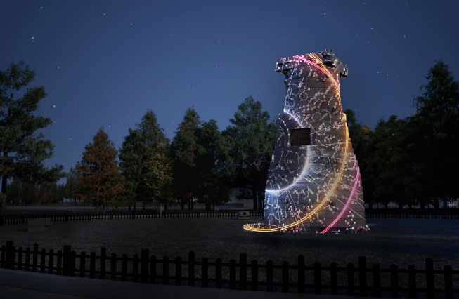 | ▲ ‘미디어파사드’로 연출된 첨성대 외벽에 천상열차분야지도가 투사된 장면 |