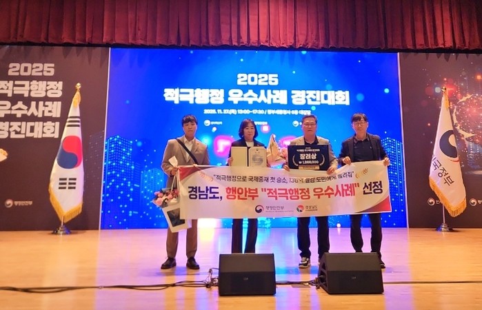 [파이낸셜경제=김예빈 기자] 경남도가 지난 27일 열린 행정안전부 ‘2025년 적극행정 우수사례 경진대회’에서 ‘적극행정으로 국제중재 첫 승소, 138억 절감 도민에게 돌려줘’ 사례로 기관 표창(인사혁신처장상)을 받았다고 28일 밝혔다.
