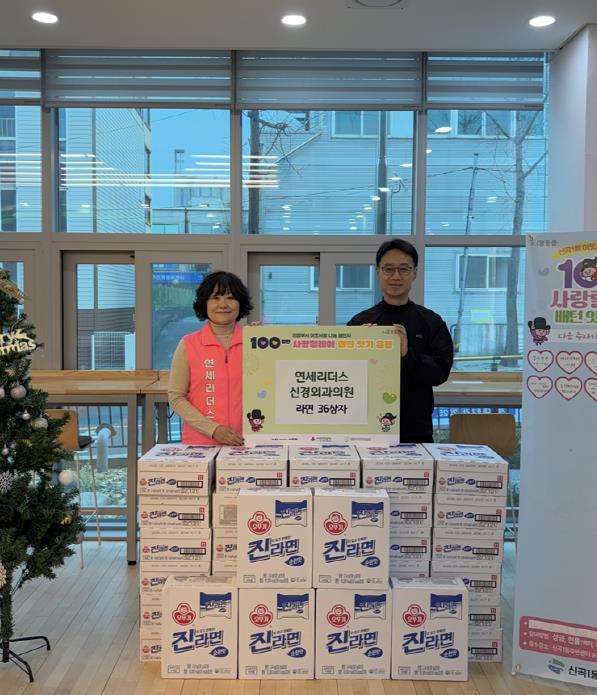 | ▲ 의정부시 신곡1동, 연세리더스신경외과의원 '사랑의 라면' 기탁 |