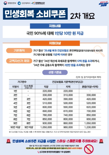 이번 소비쿠폰 지급은 1차 지급과 달리 국민 90%에게 1인당 10만원을 지급하며, 이번주 금요일인 26일까지는 요일제로 운영하고 있다.