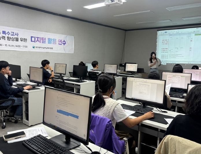 [파이낸셜경제=김지훈 기자] 대구남부교육지원청은 10월 14일과 15일 이틀간 새빛캐드컴퓨터학원에서 남부특수교육지원센터 교사 15명을 대상으로 디지털 활용 연수를 진행했다고 밝혔다.