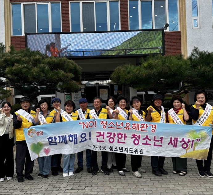[파이낸셜경제=김예빈 기자] 밀양시 가곡동은 청소년 지도위원(위원장 김명숙)과 함께 지역 내 학교 주변과 밀양역 일대에서 청소년 유해환경 개선 캠페인을 펼쳤다고 23일 밝혔다.