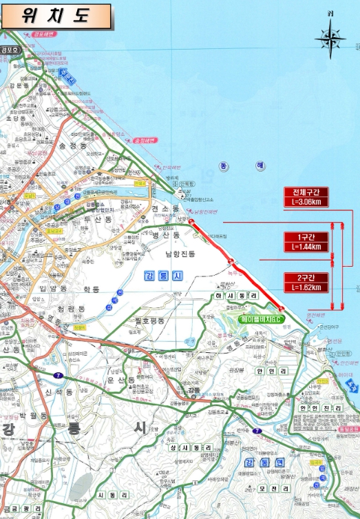 도로 개설이 완료되면 70여년 간 단절됐던 강릉 남부권 해안 경관도로가 하나로 연결되어 동해안 최고의 드라이브 코스로 거듭날 전망이다.