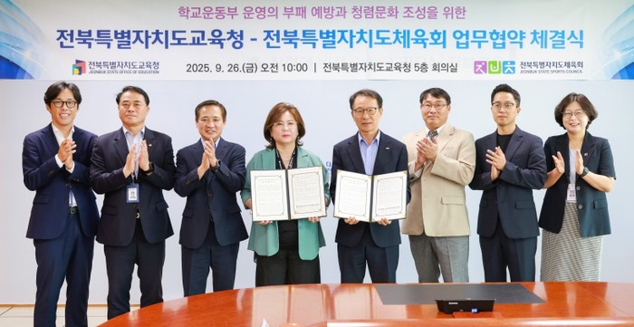 [파이낸셜경제=김영란 기자] 전북특별자치도교육청과 전북특별자치도체육회가 공정하고 투명한 학교 운동부 환경 조성을 위해 손을 맞잡았다.