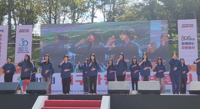 [파이낸셜경제=김지훈 기자] 대구서부교육지원청은 10월 25일 두류공원 2.28자유광장에서 열린 ‘대구자원봉사박람회’에 초록봉사단 소속 ‘하모니수어합창단’ 41명이 참여했다고 밝혔다.