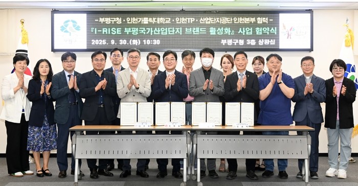 [파이낸셜경제=김영란 기자] 부평구는 지난 30일 구청 상황실에서 인천가톨릭대학교 ·인천테크노파크·한국산업단지공단과 함께 ‘I-RISE 부평국가산업단지 브랜드 활성화 사업’ 협약을 체결했다.