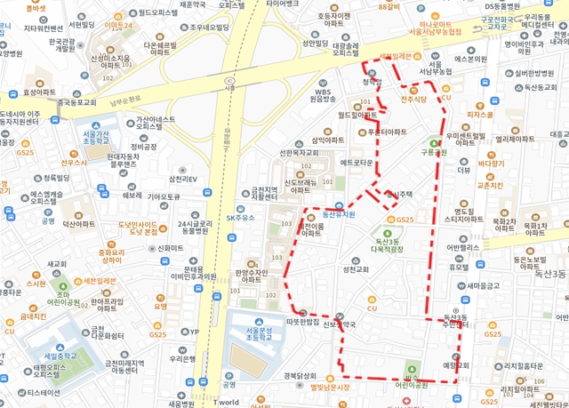 | ▲ 2025년 제6차 주택재개발 후보지 선정구역 - 금천구 독산동 979 일대 위치도(대상지 구역계는 선정위원회 조건이행 및 신속통합기획 등 계획수립 과정에서 변경될 수 있음) |