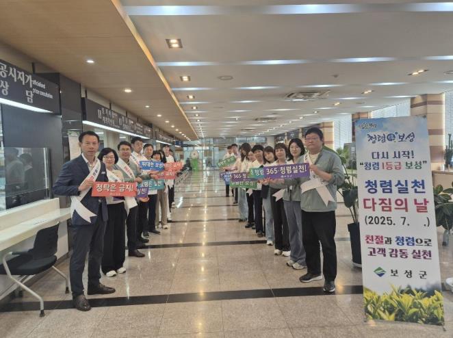 | ▲ 보성군, 행안부 ‘국민행복민원실’ 3회 연속 선정_보성군청 민원실에서 직원들이 친절민원 실천을 다짐하고 있다 |