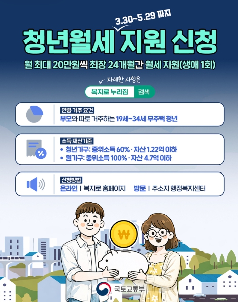 [파이낸셜경제=김영란 기자] 청년월세 지원 신청(3.30~5.29까지)