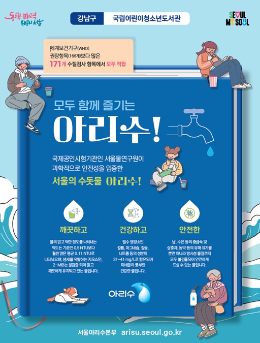 이번 정밀수질검사 결과는 해당 도서관 현장에 포스터 형태로 부착해 아리수의 수질을 확인할 수 있도록 했으며, 서울아리수본부 누리집에도 자치구별 결과를 게재해 정보 접근성과 투명성을 높였다.