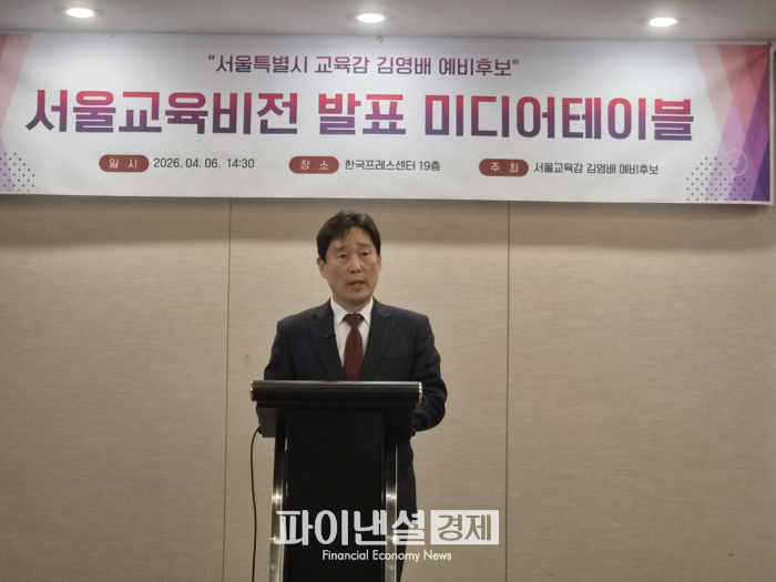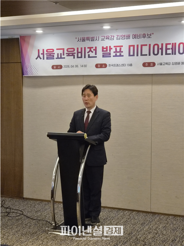 [파이낸셜경제=김예빈 기자] 김영배 서울시교육감 후보는 4월 6일 14시 한국프레스센터 19층 국화실에서 기자회견을 열고, 서울교육의 패러다임을 뿌리부터 바꾸는 메인 비전 ‘교육은 경영이다’를 슬로건으로 발표했다. 김 후보는 과거의 가치 회복, 현재의 현장 혁신, 미래의 글로벌 도약을 관통하는 구체적인 로드맵을 제시하며 “서울을 세계 최고의 교육 경영 도시로 만들겠다”는 포부를 밝혔다.