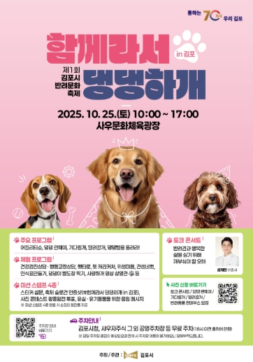 [파이낸셜경제=김기보 기자] 김포시는 반려동물과 시민이 함께하는 문화의 장인 제1회 김포시 반려문화축제 '함께라서 댕댕하개 in 김포'가 오는 10월 25일 사우문화체육광장(사우동)에서 개최된다고 밝혔다.
