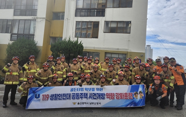 [파이낸셜경제=김예빈 기자] 울산 남부소방서는 9월 24일까지 중구 재개발지역 아파트 단지에서 화재 현장 골든타임 확보를 위한 `방화문 시건개방 구조훈련'을 실시하고 있다고 밝혔다.