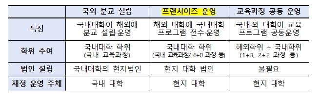 | ▲ 국내 대학의 해외 진출 유형 |