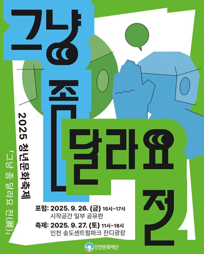 [파이낸셜경제=김기보 기자] 인천광역시와 인천문화재단이 오는 27일 인천 송도 센트럴파크 잔디광장에서 ‘2025 청년문화축제 '그냥 좀 달라요, 전(展)'’을 개최한다.