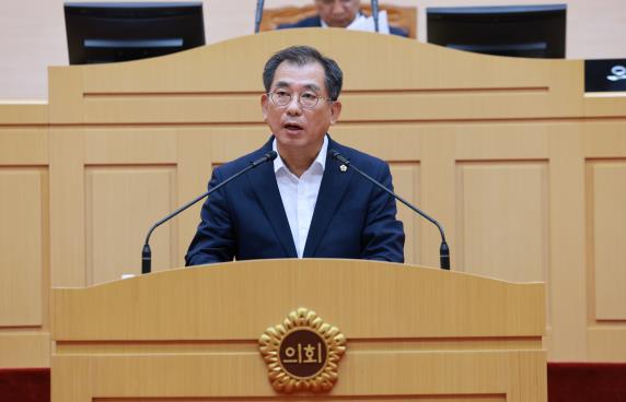 | ▲ 10월 15일 전남도의회 본회의장에서 최병용 의원이 ‘해양쓰레기 대응의 국가책임 강화 촉구 건의안’에 대한 제안설명을 하고 있다. |