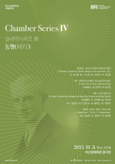 [파이낸셜경제=박영진 기자] 부산시립교향악단(수석객원지휘자 홍석원)의 색다른 면모를 감상할 수 있는 실내악 시리즈의 네 번째 무대가 열린다. 이번 공연은 부산시향의 상임 단원과 비상임 단원이 함께 무대에 올라 앙상블을 만들어 내는 특별한 무대로, 오는 11월 5일(화) 부산문화회관 중극장에서 펼쳐진다.