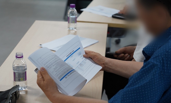 | ▲ 한 청각언어장애인이 지난 6월 인천시사회서비스원 대회의실에서 열린 ‘인천시 청각언어장애인복지관 운영방안 연구’ 중간보고에서 발표 자료를 읽고 있다. |