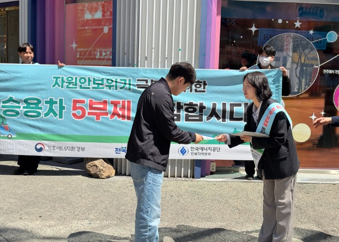 [파이낸셜경제=김예빈 기자] 전북특별자치도는 국제 정세 불안에 따른 자원안보 위기에 대응하기 위해 8일 도청 일원에서 승용차 5부제 참여와 에너지 절약 실천을 독려하는 거리 캠페인을 실시했다.