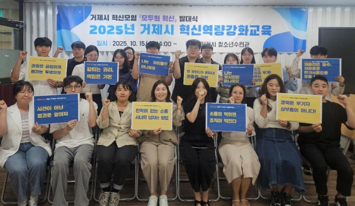 [파이낸셜경제=김예빈 기자] 거제시는 지난 15일 거제시 청소년수련관에서 거제시 혁신모임 '모두의 혁신' 활동 시작을 알리고, 이들 23명을 대상으로 ‘혁신역량강화 교육’을 실시했다.