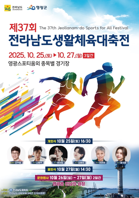 [파이낸셜경제=금윤지 기자] 전라남도체육회가 주최하고 전라남도 생활체육대축전 조직위원회가 주관하는 제37회 전라남도생활체육대축전이 10월 25일 오후 4시 30분, 영광스포티움 종합운동장에서 성대하게 막을 올린다.