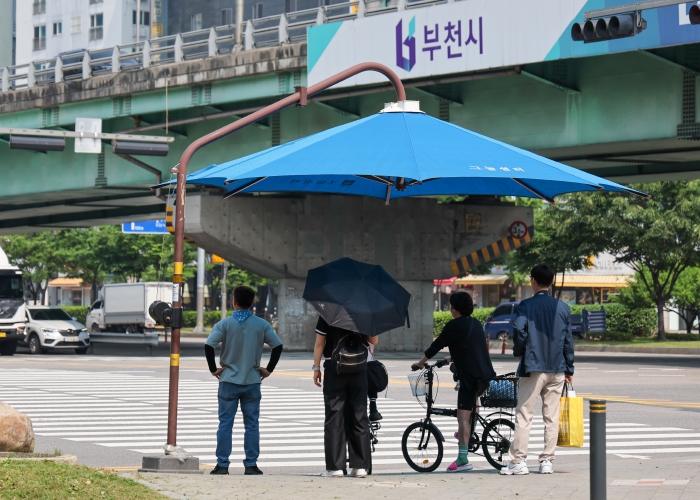 | ▲ 부천시 원미구 길주로 인근에 설치된 그늘막에서 시민들이 더위를 피하고 있다. |