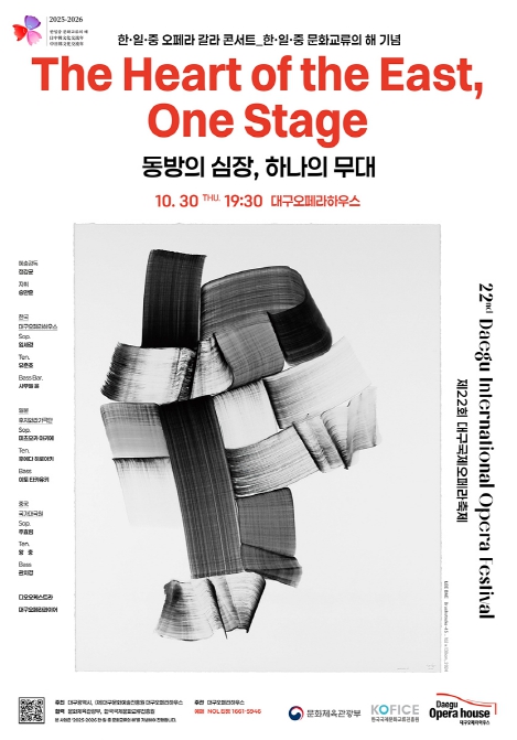 [파이낸셜경제=김지훈 기자] (재)대구문화예술진흥원 대구오페라하우스는 오는 10월 30일 오후 7시 30분, 제22회 대구국제오페라축제의 특별 공연으로 ‘2025 한·일·중 오페라 갈라 콘서트 – 동방의 심장, 하나의 무대’를 선보인다.