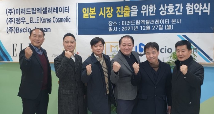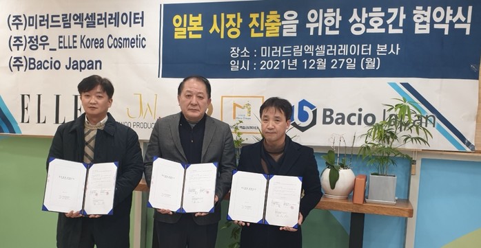 [파이낸셜경제=김세훈 기자] 미러드림엑셀러레이터(대표 박인석, 대표 김호석), 정우프로덕트(대표 최규철), Bacio Japan(회장 한경산) 3사는 지난 12월 24일 경기 고양시 ㈜미러드림엑셀러레이터 본사에서 일본에 필로테스 마이크로바이옴패치 연간 1조원 규모의 수출에 대한 업무 협약 MOU를 체결하였다고 밝혔다.