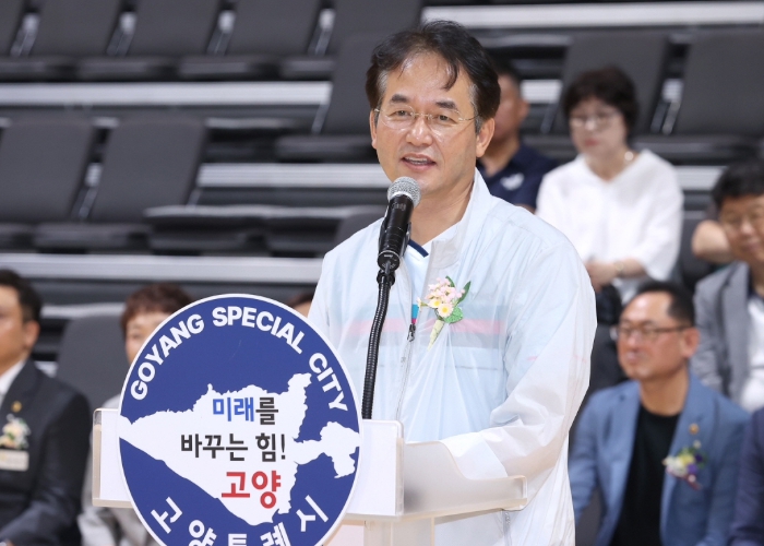 | ▲ ‘제29회 고양특례시장기 생활체육 배드민턴대회’에서 축사 중인 이동환 고양특례시장 |