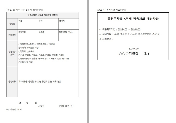 아울러 공단은 장애인·임산부 차량, 특수목적 차량, 전기차·수소차 등 불가피한 사유가 있는 경우를 고려하여 ‘공영주차장 요일제 제외차량 신청서’를 통해 제외차량을 운영할 계획이다. 해당 차량은 각 주차장 관리사무소에 방문하여 신청서를 작성하면, 내용 확인 후 ‘제외차량 비표’를 발급받아 이용할 수 있다.