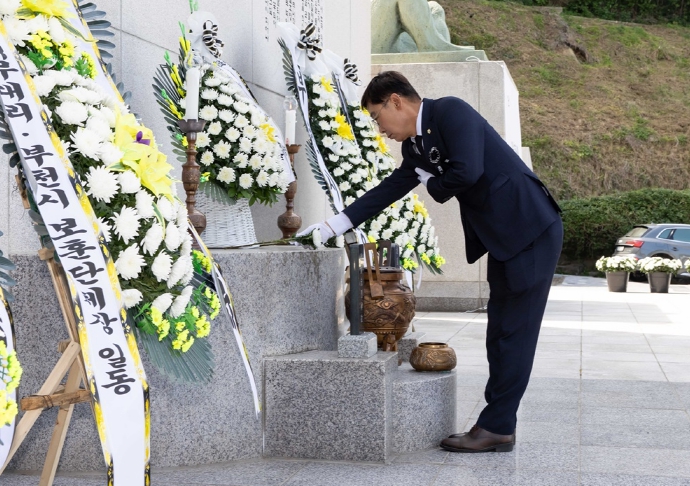 부천시의회에서는 김병전 의장을 비롯해 김선화, 장해영, 최의열, 송혜숙, 박순희, 김미자, 윤병권, 최성운, 구점자, 임은분, 김주삼, 양정숙, 이종문, 정창곤, 최은경, 장성철, 손준기, 윤단비, 최초은 의원 등이 참석해 순국선열과 호국영령들의 넋을 기렸다.