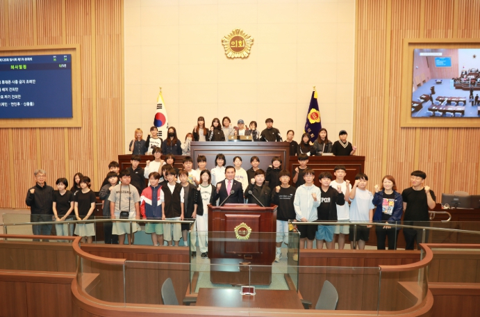 의정활동 체험 후 학생들은 “도의원 체험을 통해 생소했던 지방의회에 대해 배우는 소중한 시간이었다”고 소감을 밝혔다.