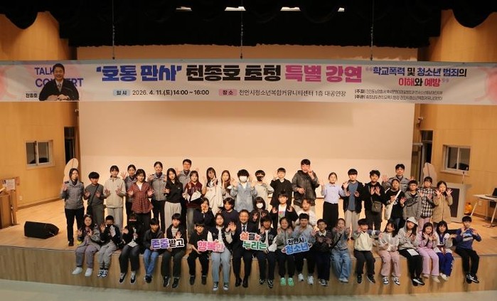 [파이낸셜경제=김영란 기자] 천안동남경찰서는, 신학기를 맞아 증가하는 학교폭력 및 청소년 범죄에 선제적으로 대응하기 위해 2026년 4월 11일 천안시청소년복합커뮤니티센터 대공연장에서 학생·학부모·교사 등 약 500여 명이 참석한 가운데 특별 강연을 개최했다.