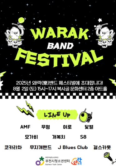| ▲ 2025년 부천시청소년센터 와!락(樂) ‘밴드 페스티벌’ 라인업 포스터 |