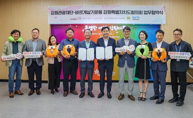 [파이낸셜경제=금윤지 기자] 강원특별자치도의 관광 활성화를 이끌고 있는 강원관광재단과 진실, 질서, 화합의 정신으로 밝고 건강한 사회 건설에 이바지하는 바르게살기운동 강원특별자치도협의회가 '2025-2026 강원 방문의 해'의 성공적인 추진을 위한 업무협약(MOU)을 맺었다고 밝혔다.