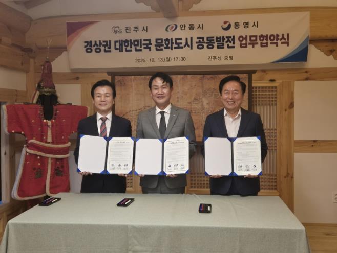 [파이낸셜경제=김예빈 기자] 경상권을 대표하는 대한민국 문화도시 통영시, 진주시, 안동시가 문화도시의 지속가능성과 상생협력을 위해 손을 맞잡았다.