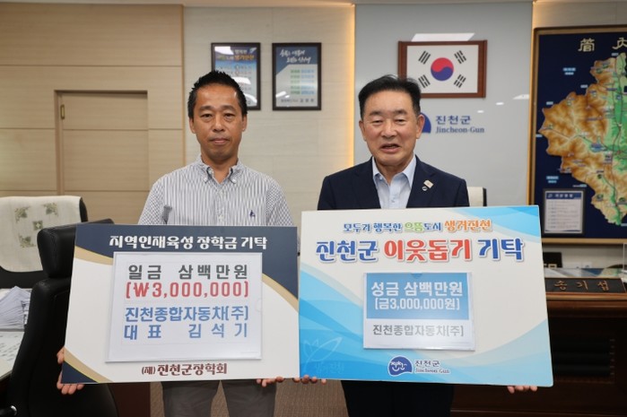 한편 이번에 기탁된 성금은 (재)진천군장학회와 충북사회복지공동모금회를 통해 드림스타트와 관내 장애 아동에 전달될 예정이다.
