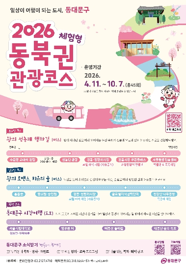 이필형 동대문구청장은 “동대문구는 일상 속에서 다양한 역사와 문화를 경험할 수 있는 도시”라며 “이번 체험형 관광 코스를 통해 많은 시민이 지역의 매력을 느끼고 여유를 찾는 계기가 되길 바란다”고 말했다.