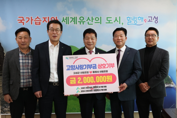[파이낸셜경제=김예빈 기자] 고성군은 12월 2일, 고성군 산림조합과 통영시 산림조합(조합장 차형재)이 고향사랑기부제 취지에 동참하기 위해 각각 200만 원을 상호기부했다고 밝혔다.