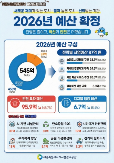 | ▲ 세종시설공단, 2026년 예산 545억 확정 |