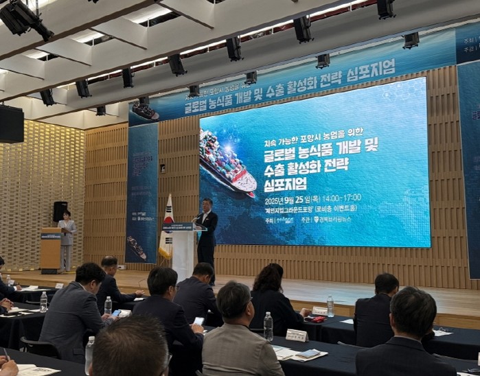 [파이낸셜경제=김지훈 기자] 포항시는 25일 체인지업그라운드에서 ‘지속가능한 포항시 농업을 위한 글로벌 농식품 개발 및 수출 활성화 전략 심포지엄’을 개최했다.
