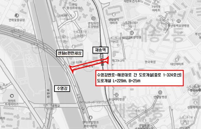 재송동 주민 숙원사업인 해당 도로 개설은 시설 결정을 받은 지 20년이 넘도록 사업이 지지부진했다.