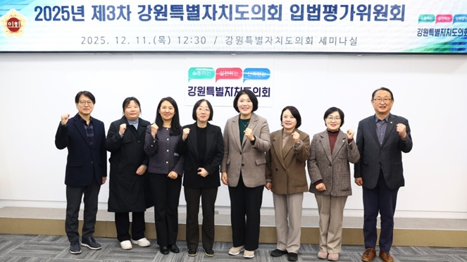 [파이낸셜경제=조성환 기자] 강원특별자치도의회는 12월 11일 오후 12시 30분, 도의회 세미나실에서 '2025년도 제3차 강원특별자치도의회 입법평가위원회' 를 개최했다.