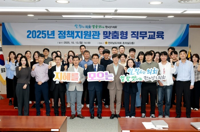 [파이낸셜경제=김예빈 기자] 전라남도의회는 10월 13일, 도의회 초의실에서 소속 정책지원관과 직원을 대상으로 ‘맞춤형 직무교육’을 실시했다.
