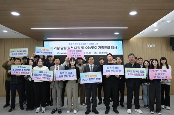 [파이낸셜경제=김예빈 기자] 광주도시공사는 11일 ‘일·가정 양립 실천 다짐 행사’를 열어 직원이 행복하고 기업이 함께 성장하는 직장문화를 확산하겠다고 밝혔다.