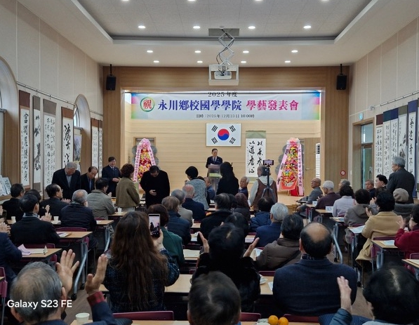 [파이낸셜경제=김지훈 기자] 영천향교 국학학원(원장 이덕기)은 지난 23일 본원 3층 대강당에서 관내 단체장과 수강생 등 200여 명이 참석한 가운데 ‘2025년 정기 학예발표회’를 성황리에 개최했다.