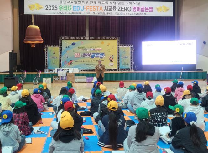 [파이낸셜경제=김지훈 기자] 울진교육지원청은 11월 8일 오전 9시, 울진군민체육관에서 울진 관내 초등학생 5~6학년 100여명을 대상으로 '2025 우리珍 에듀 페스타 ‘사교육 ZERO 영어골든벨’'을 개최했다.
