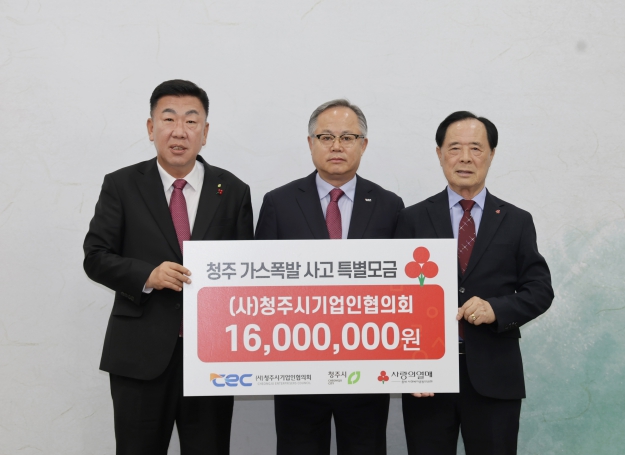 (사)청주시기업인협의회도 회원들이 자발적으로 모금한 성금 1,600만원을 전달했다. 조건희 청주시기업인협의회장은 “예기치 못한 사고로 어려움을 겪는 이웃들에게 조금이나마 힘이 되길 바란다”며 “앞으로도 재난 피해 이웃과 소외계층을 위한 나눔을 지속적으로 이어가겠다”고 밝혔다.